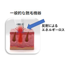空気と皮膚の間の屈折率が異なるためレーザーエネルギーのロスが生じます。